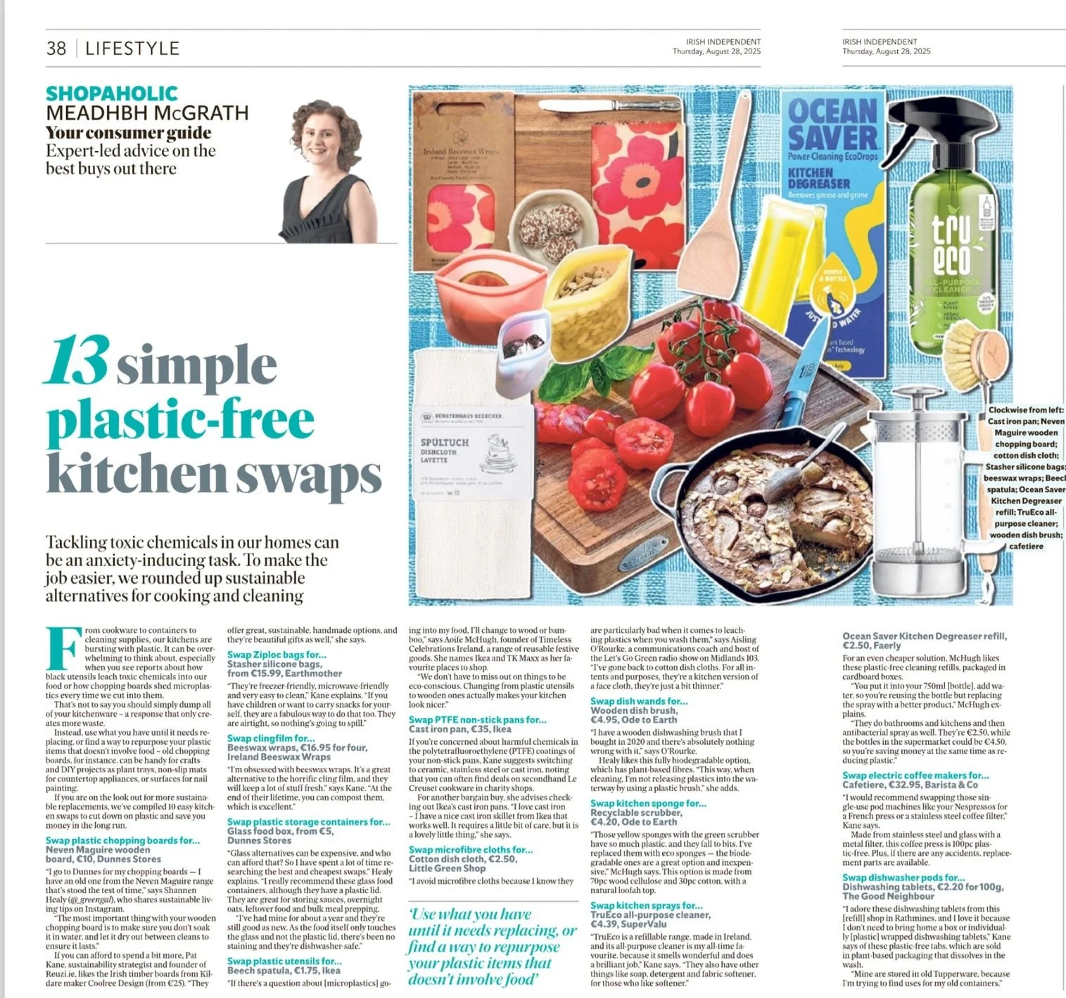 I was delighted to be featured in the Irish Independent this week in a piece on plastic-free kitchen swaps.